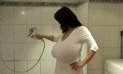 Sensual Jane cleans with her mammories