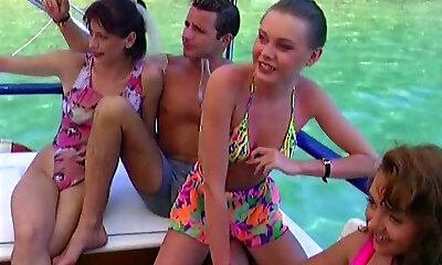 Bunch of steamy Japanese sluts get nailed right at the beach in gang-fuck lovemaking video