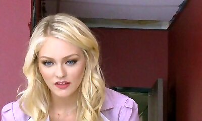 Sweet blonde girl Elsa Jean penetrates her GF's brother