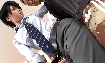 Subtitled Asian crossdresser Kaoru Oshima rooftop handjob