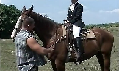 mature babe is riding her stud on a hay stack
