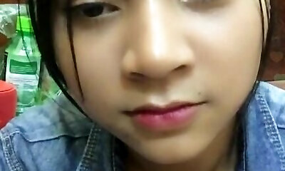 Asian small titty brown-haired rubbing her clit on webcam